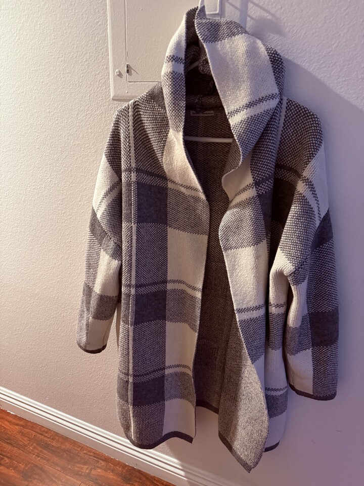 모자달린 긴 가디건 검정, 갈색,체크(M사이즈)