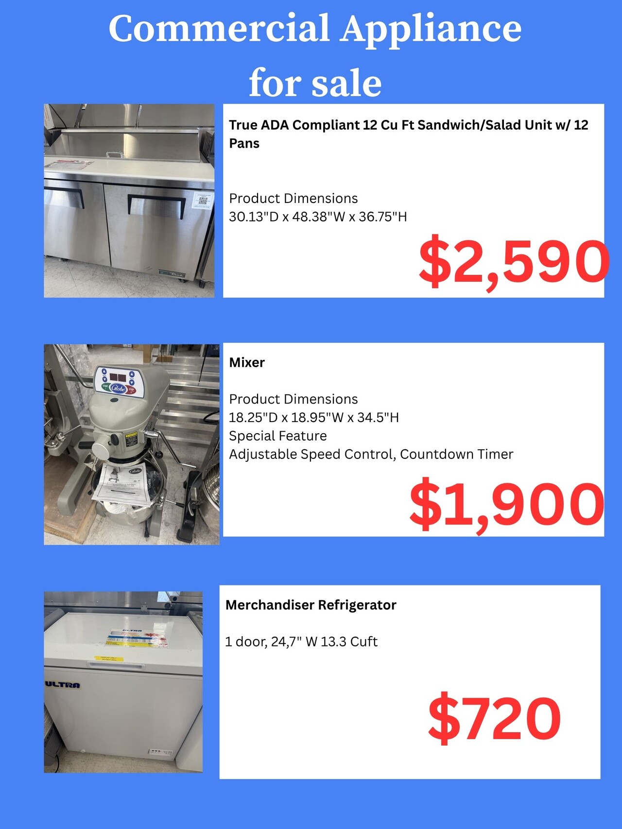 커머셜 냉장고, 믹서 처분 합니다.