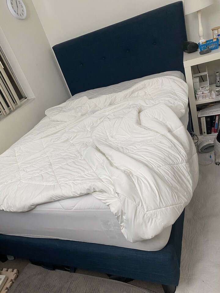 프레임은 거의 새것이고 매트리스는 사용자가 허리가 안좋아서 덜 푹신한걸로 사용했습니다.