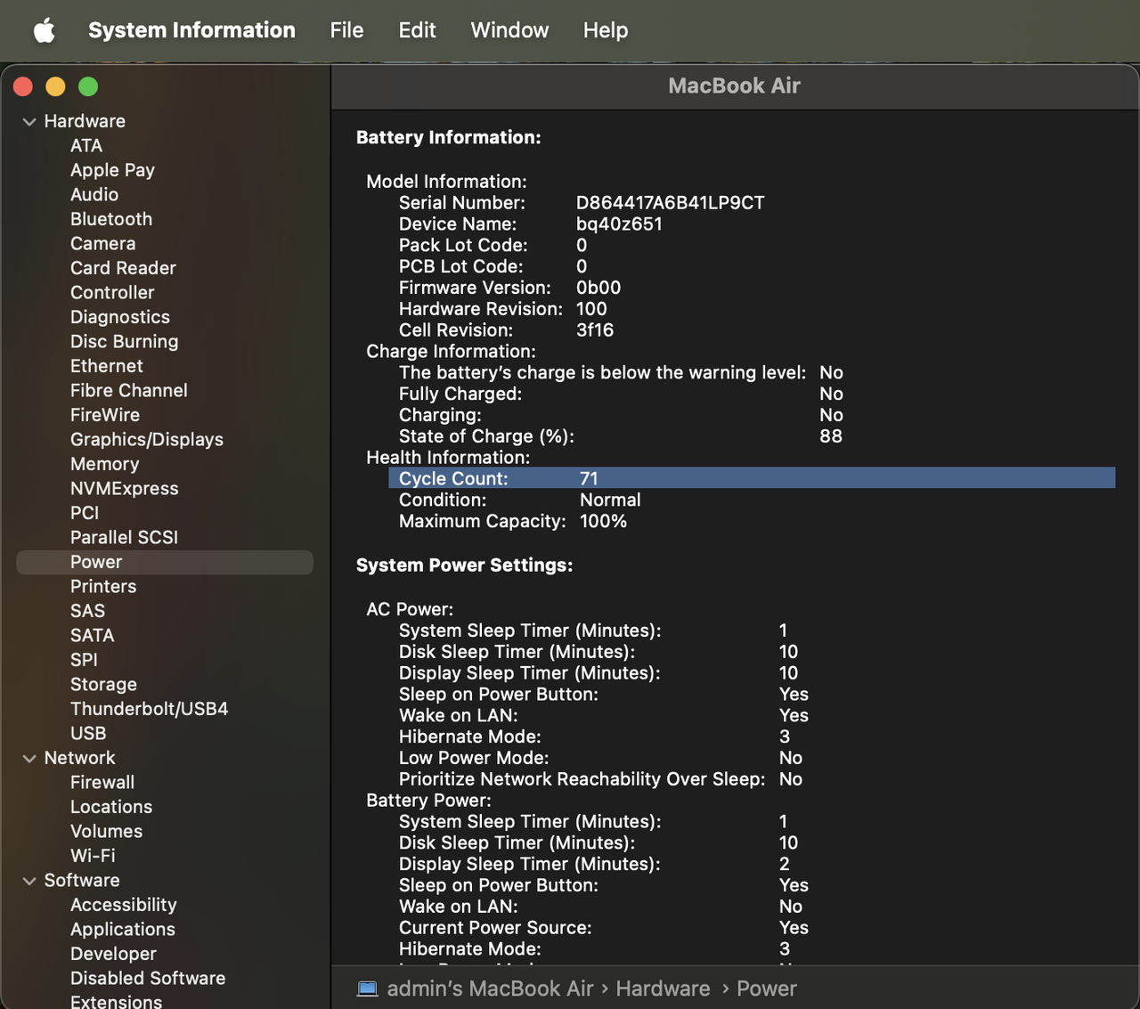 배터리 사이클수 71에 용량 100%로 거의 새것 입니다.