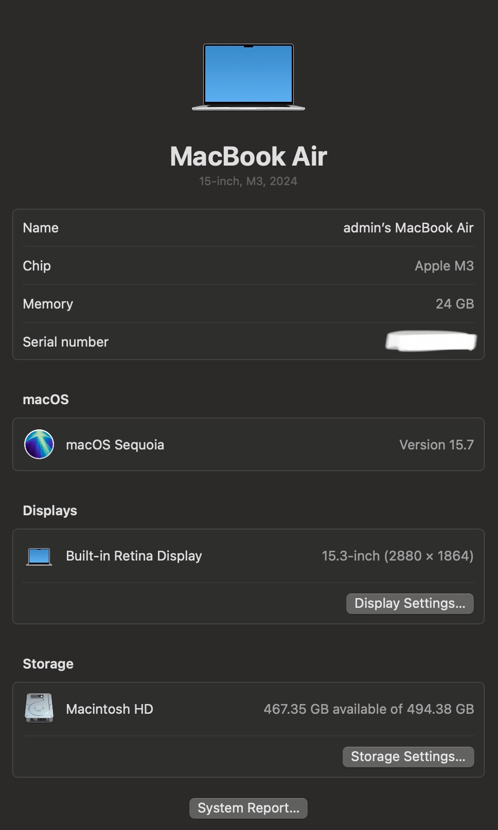 M3 CHIP, 24GB 512GB 사양에 애플보험 2026년 1월 까지 됩니다.