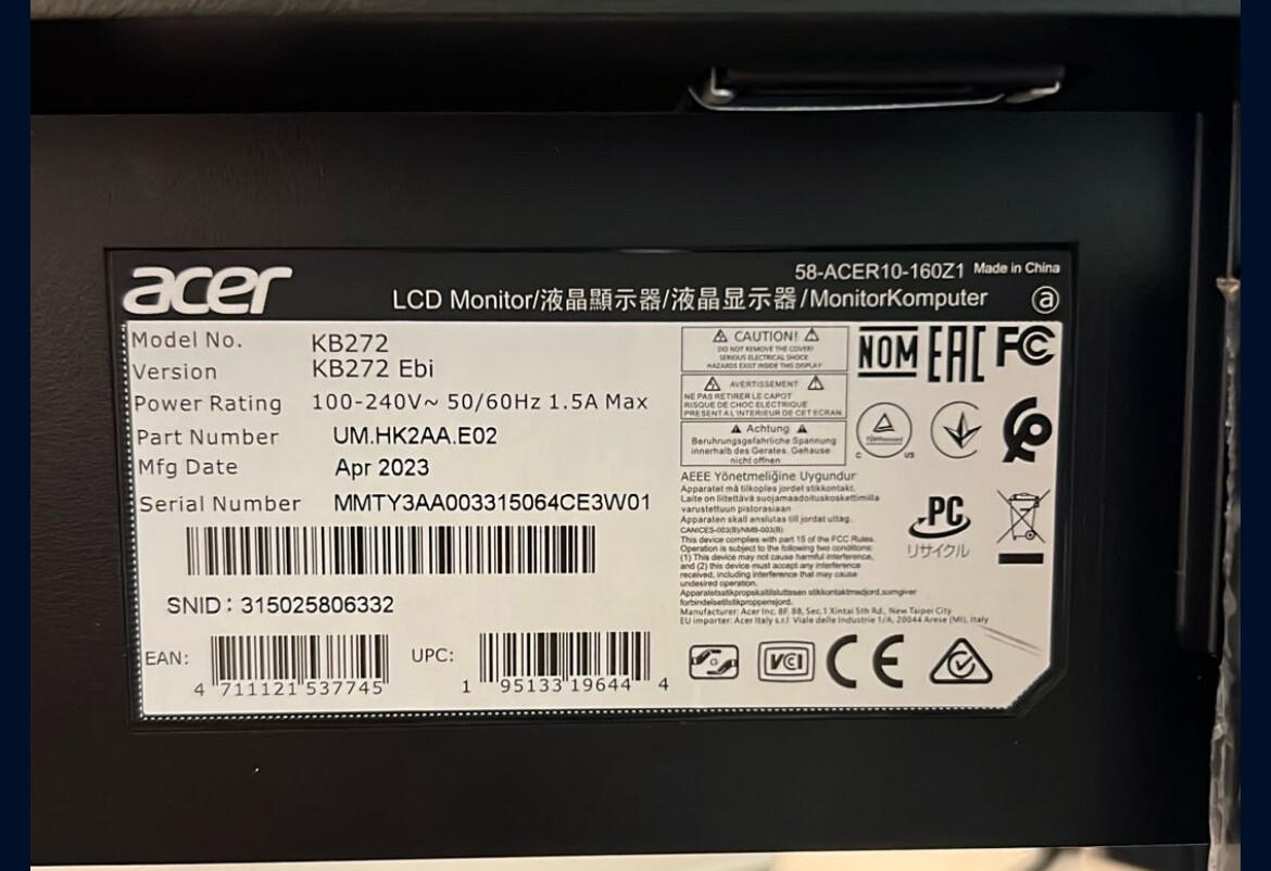 acer 27인치 모니터 - 화면에 기스 있지만 사용 문제 없음 $40 (마지막 사진 참고 부탁드립니다)
