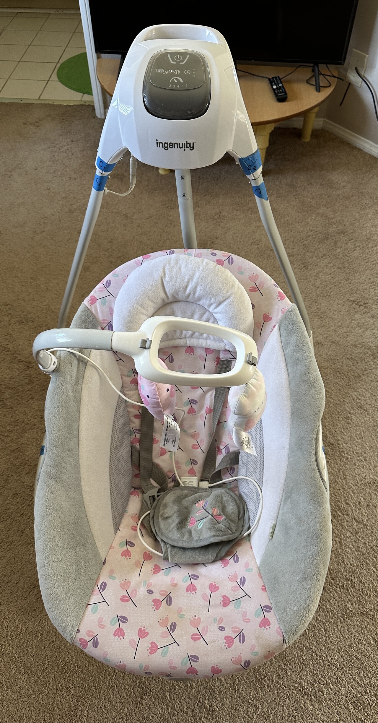 아기를 올려놓고 세팅하면 좌우로 흔들리고 음악이 나옵니다.