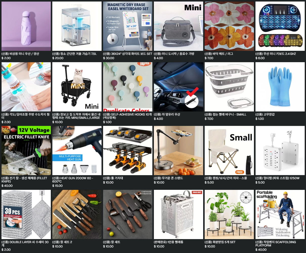 - 하루혹은 이틀에 물건 최소 하나씩 올립니다. ( 주로 저녁 9시 이후 )