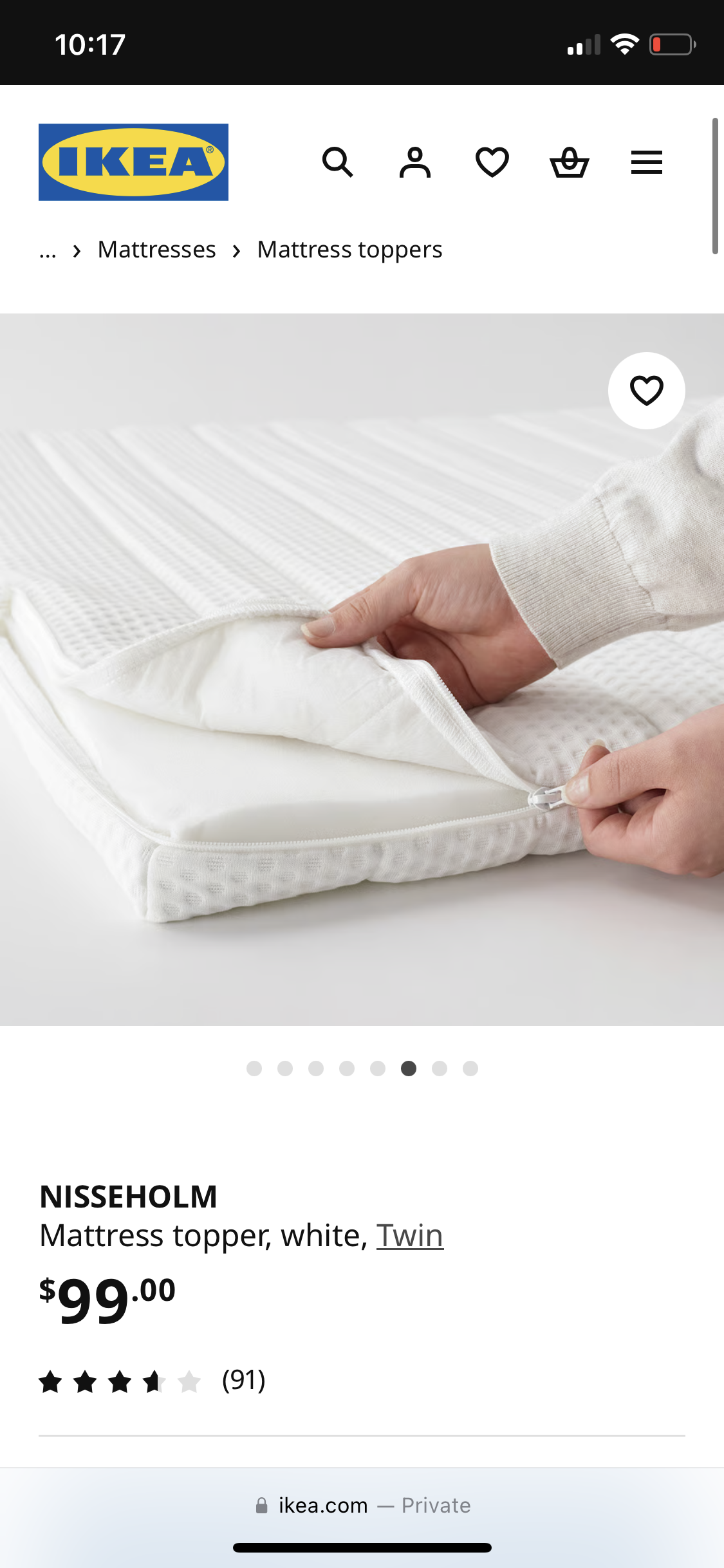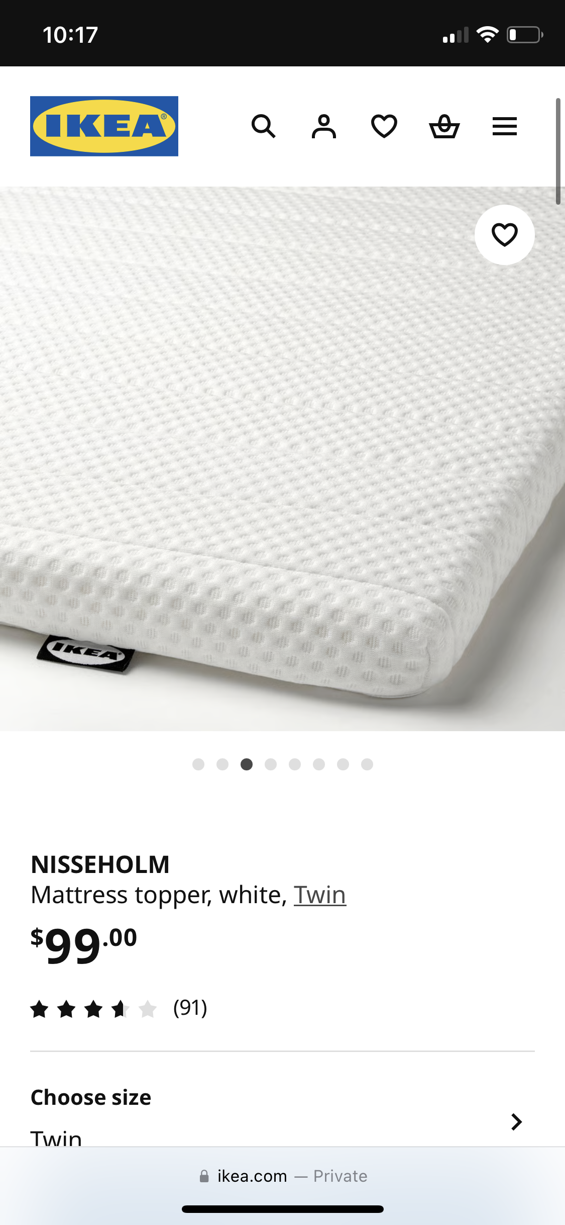 매드리스 메모리폼  패드, 트윈 사이즈, 흰색 $20 (2 인치)