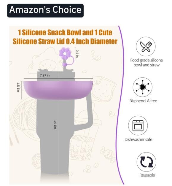실리콘 스낵 볼 1개와 귀여운 실리콘 빨대 뚜껑 1개 셋트