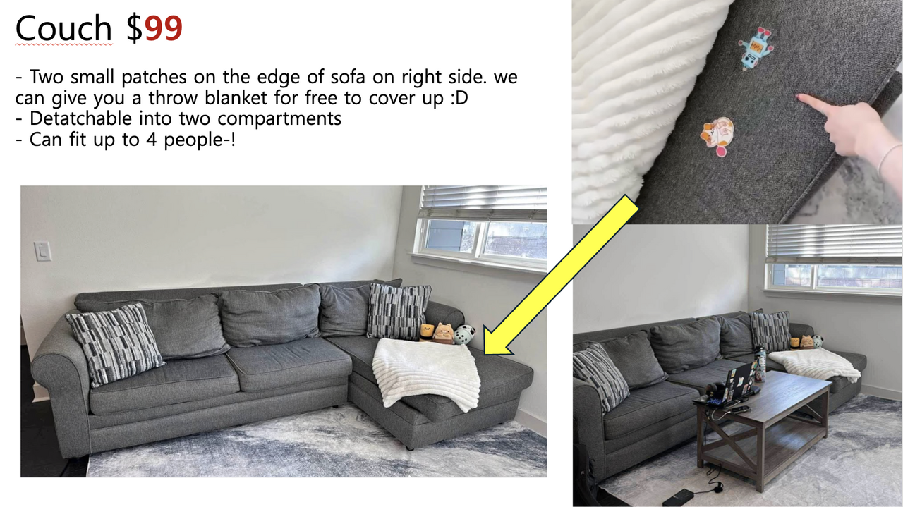 상태가 좋고 크기가 큰 쇼파인데 싸게 드리는 이유는 작은 패치 두개가 있기 때문입니다.