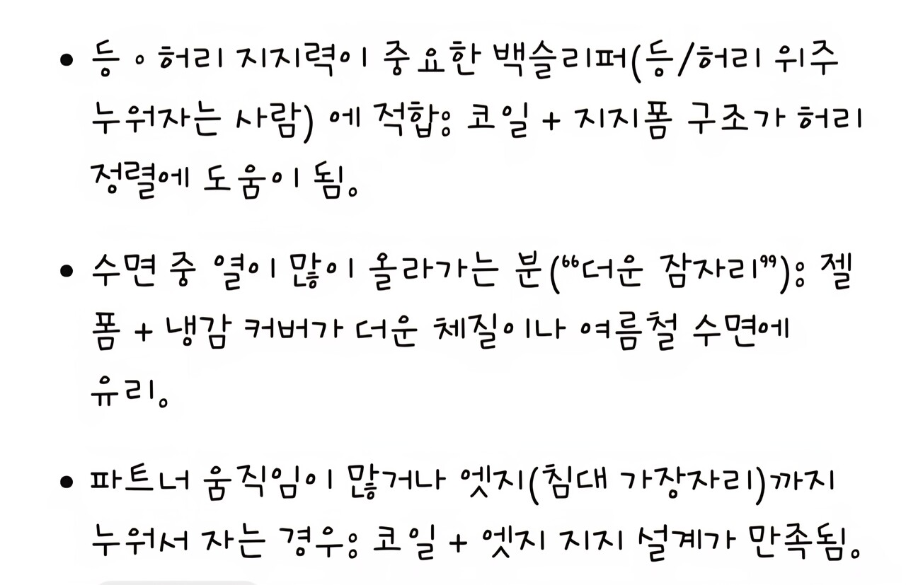 허리에 조은 침대구요 제가 허리가 안조아서 허리중심으로 생각해서 산 메트리스입니다