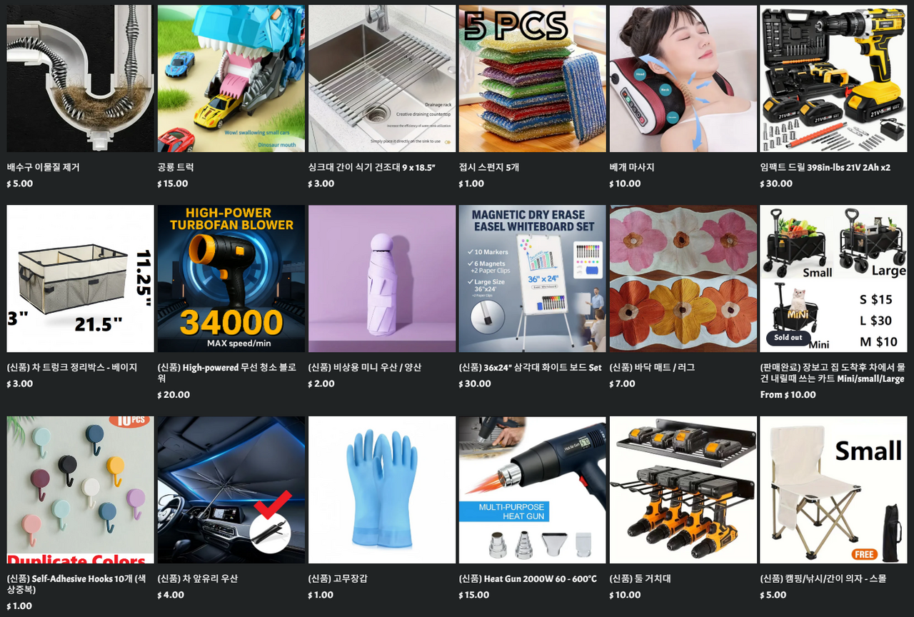 - 하루혹은 이틀에 물건 최소 하나씩 올립니다. ( 주로 저녁 9시 이후 )