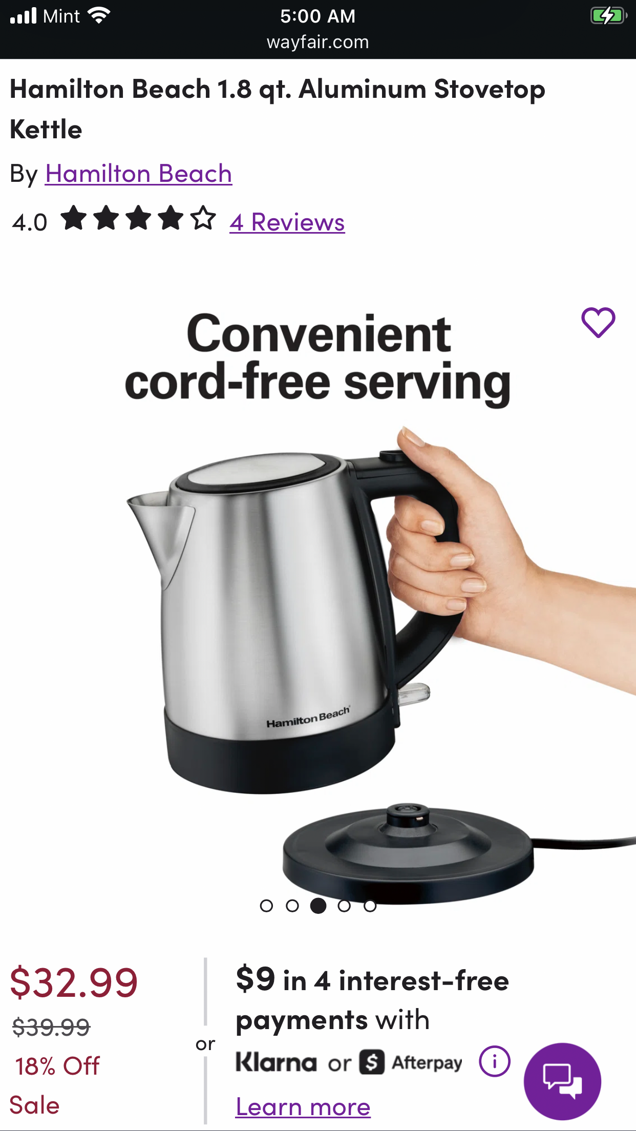 Hamilton Beach 1.8 qt. Aluminum Stovetop Kettle,