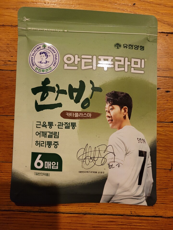 손흥민 한방파스 예요 1팩에 6개 들어 있어요 4팩에 20.00 입니다 2027/12 엘에이