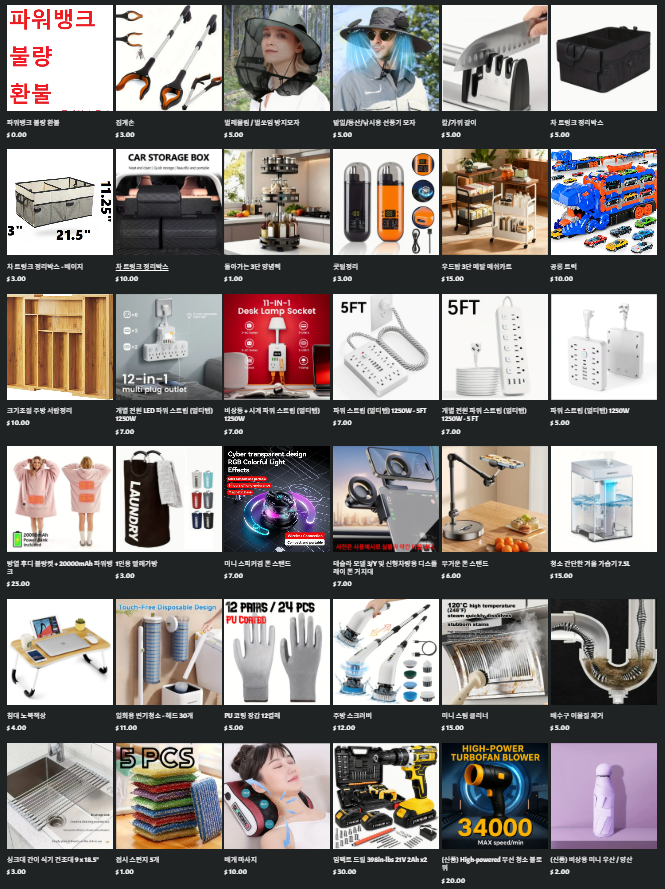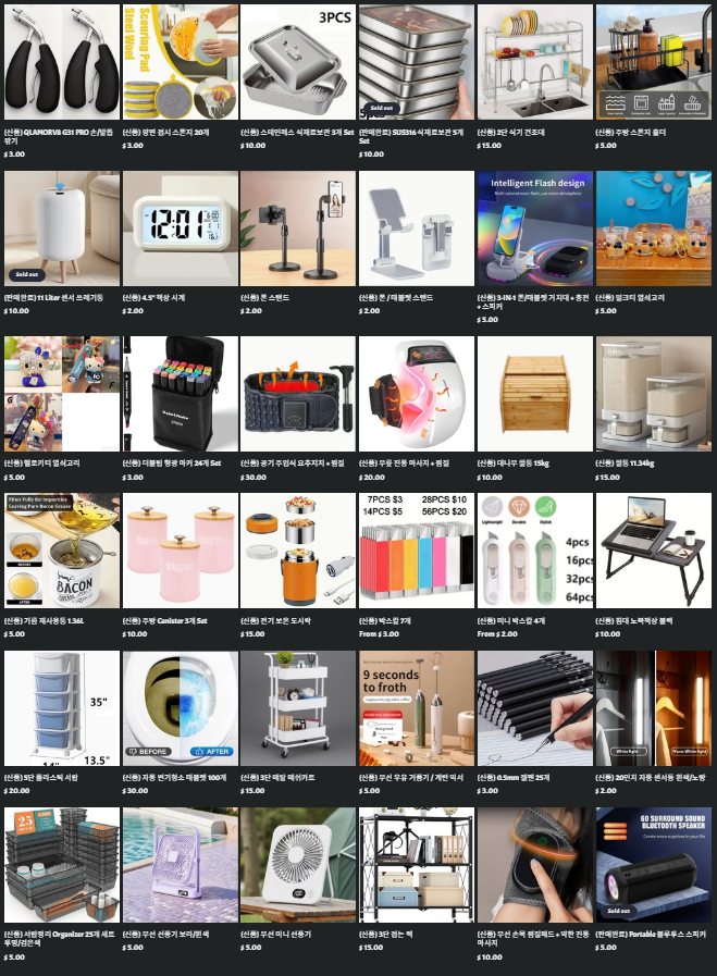 - 하루혹은 이틀에 물건 최소 하나씩 올립니다. ( 주로 저녁 9시 이후 )