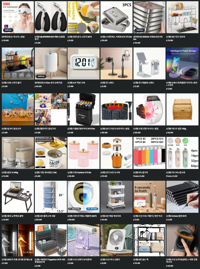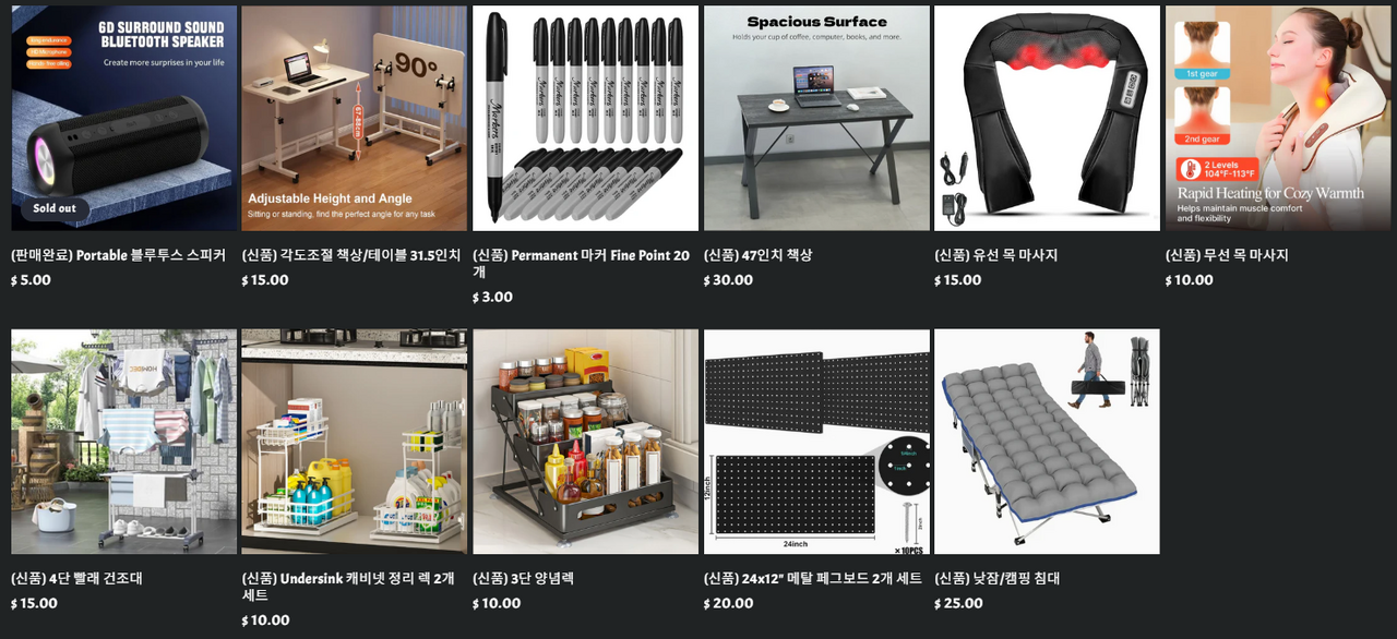 - 하루혹은 이틀에 물건 최소 하나씩 올립니다. ( 주로 저녁 9시 이후 )