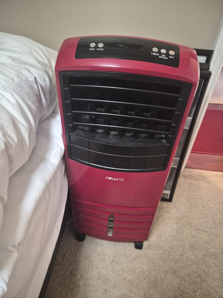 일반 선풍기 아니고 안에 얼음 넣고 돌리면 찬바람 나오는 쿨러입니다.