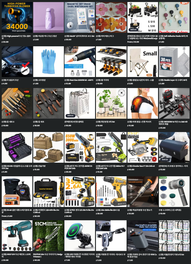 - 하루혹은 이틀에 물건 최소 하나씩 올립니다. ( 주로 저녁 9시 이후 )