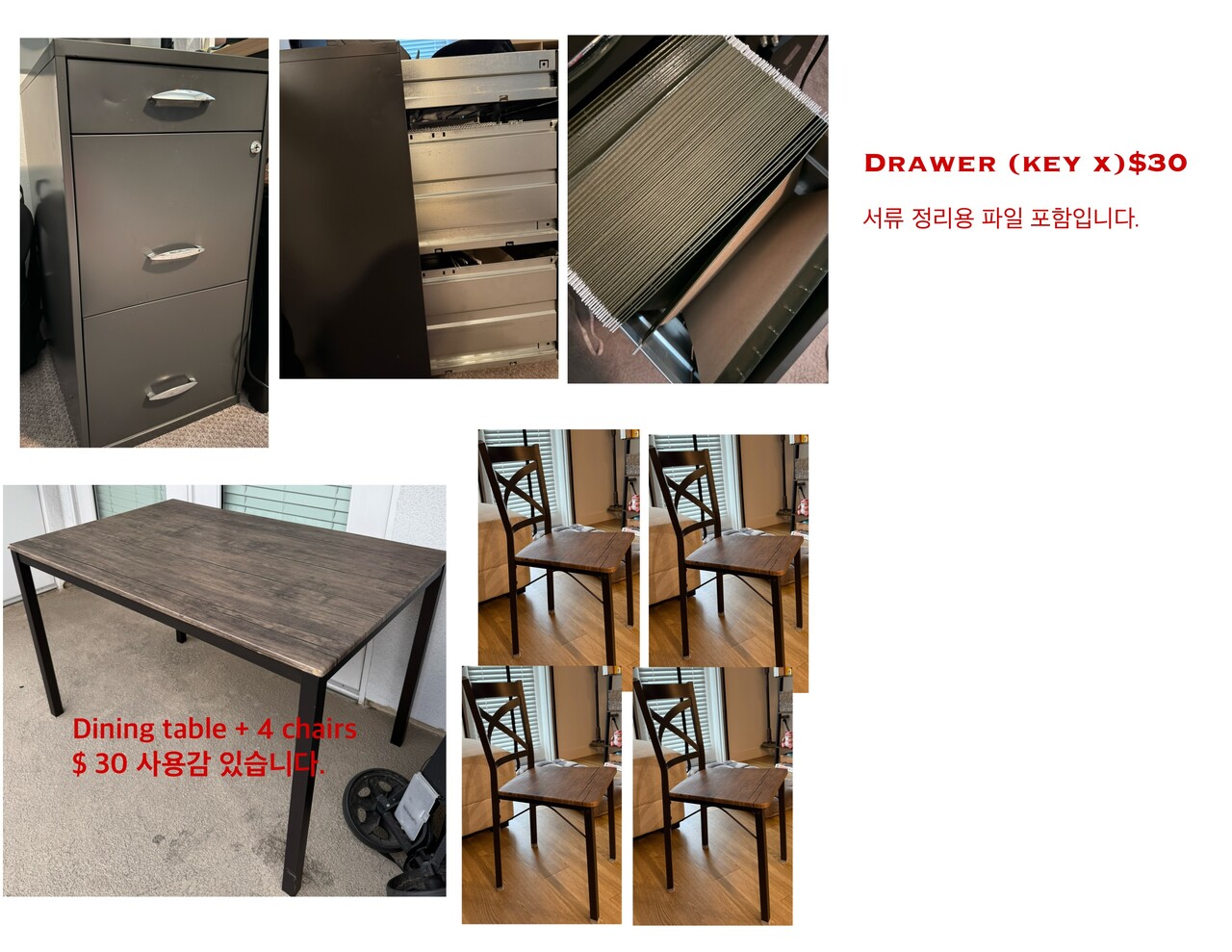 식탁 +의자 4개 세트 $30 사용감이 있어 싸게 드려요