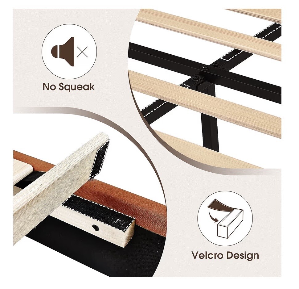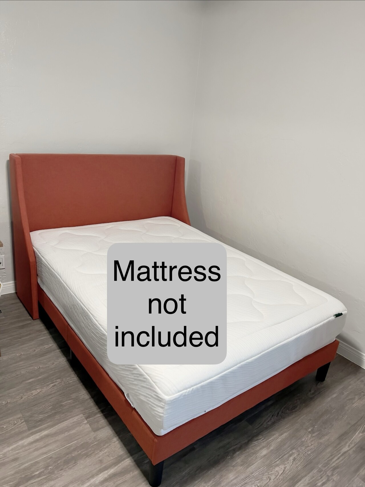 Full 사이즈 베드 프레임 판매합니다. (Full Size Bed Frame with Upholstered Headboard, No Box Spring Needed, Mattress Foundation, Easy Assembly, Orange)