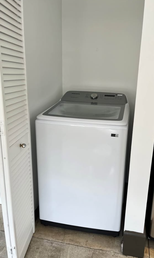 상단 도어(top-load) 방식으로 세탁 중간에도 빨래를 추가하기 편리하며, 큰 빨래도 잘 처리합니다.