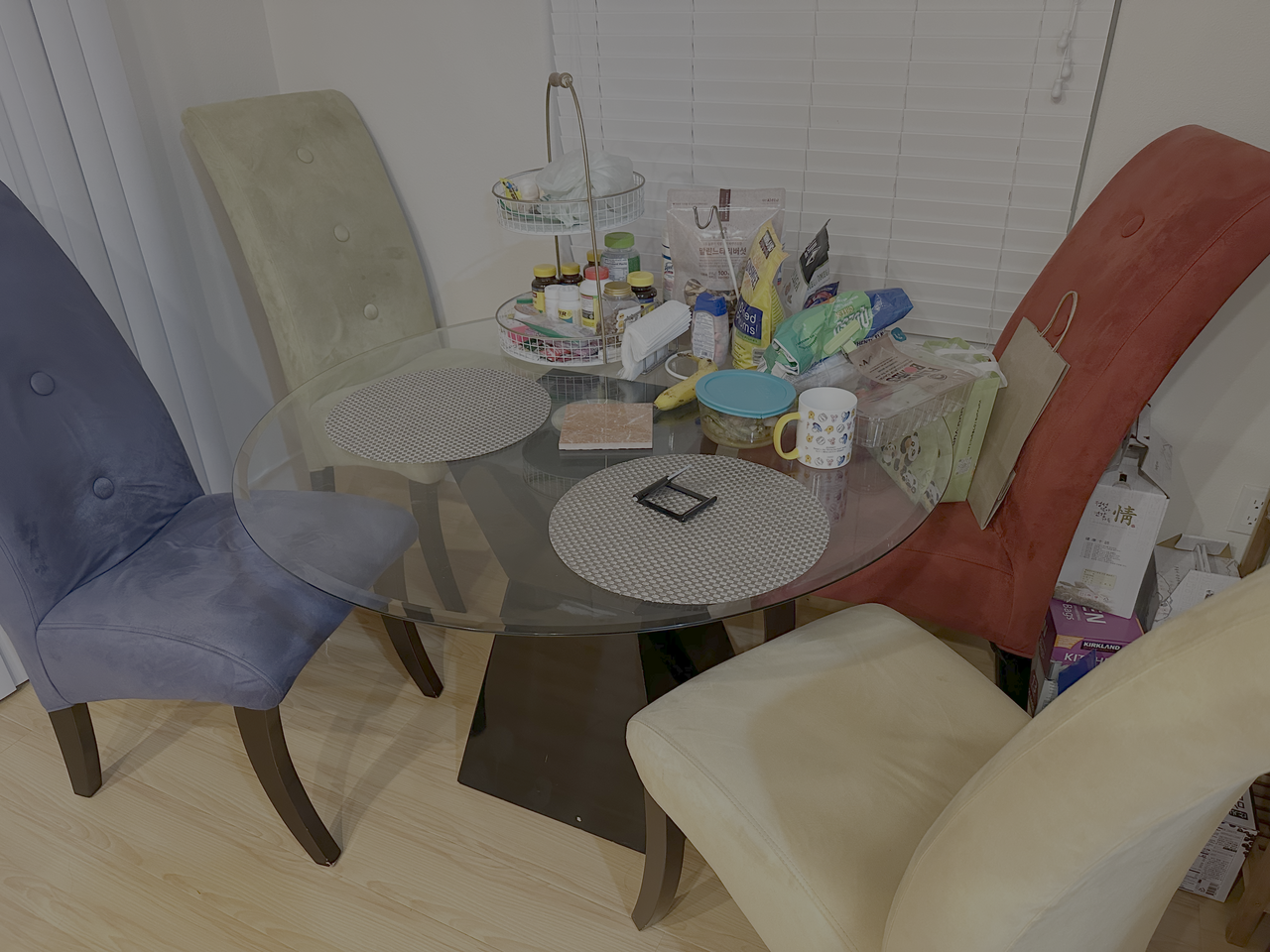 6. Round dining table + 4 Chairs 동그란 식탁 + 4개 의자: $50 (사용감 있음)