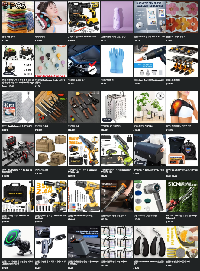 - 하루혹은 이틀에 물건 최소 하나씩 올립니다. ( 주로 저녁 9시 이후 )
