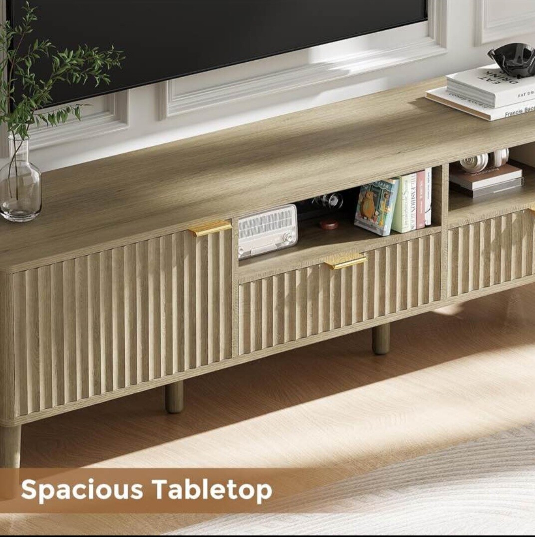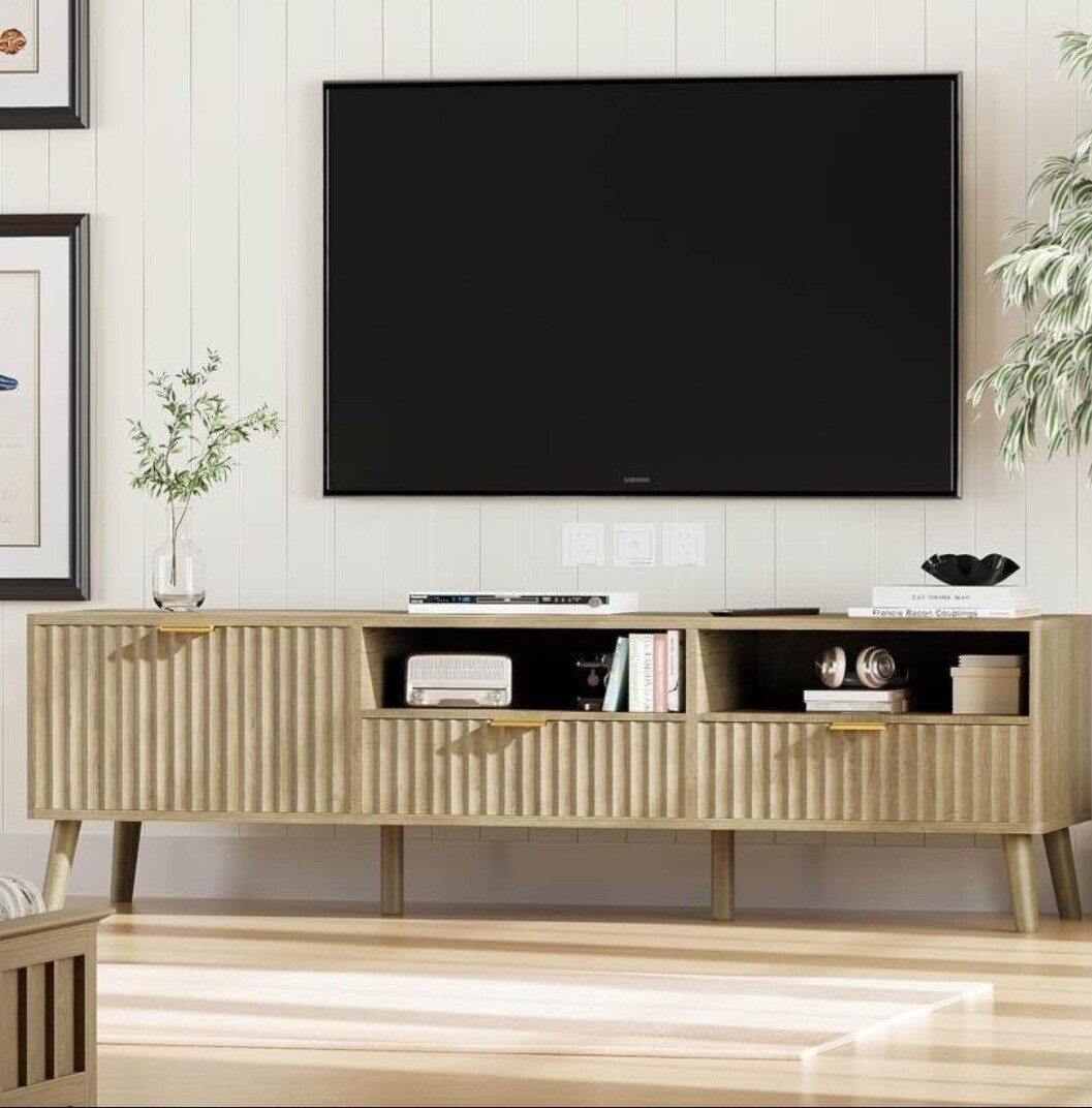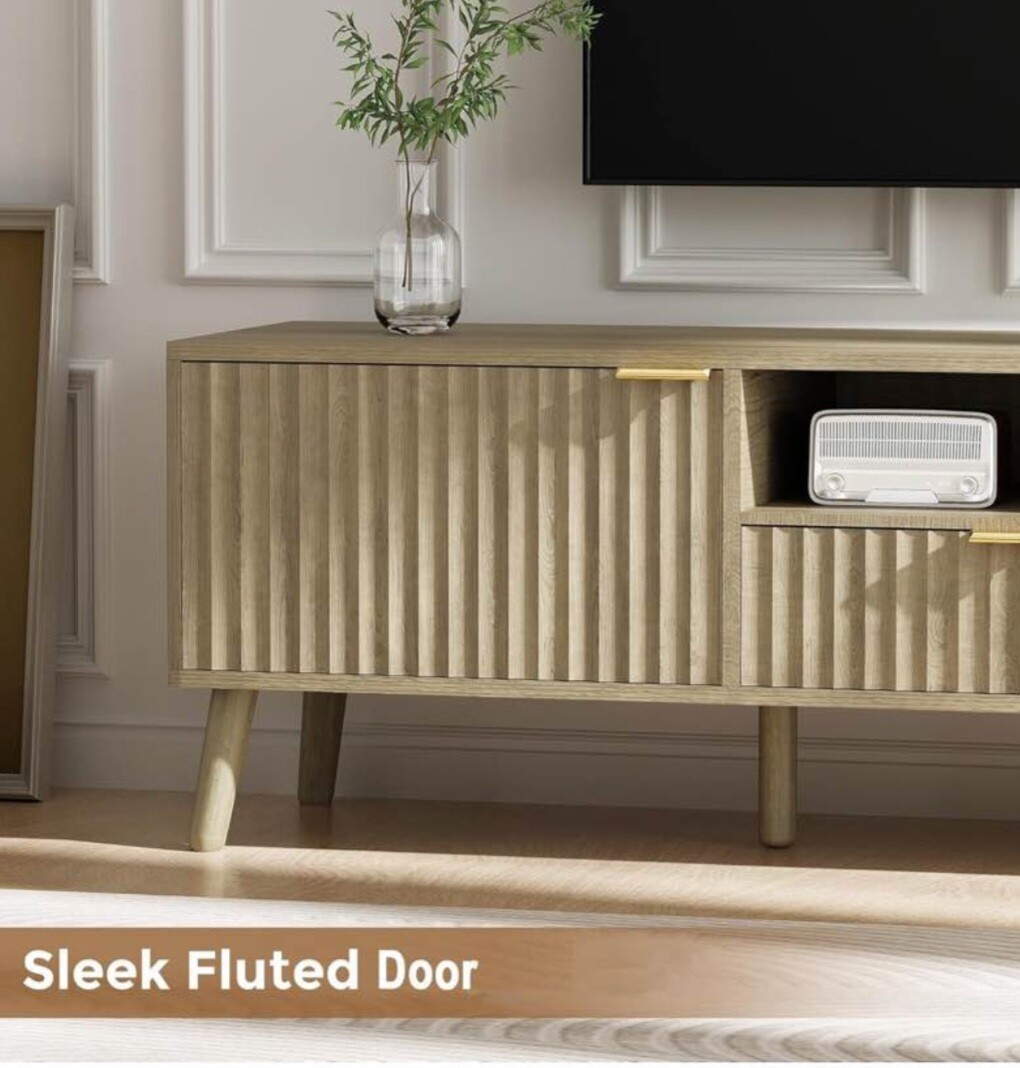 TV Stand 59" Mid Century Modern TV Console Entertainment Center with Open Storage Shelves TV Media Console Table for Living Room