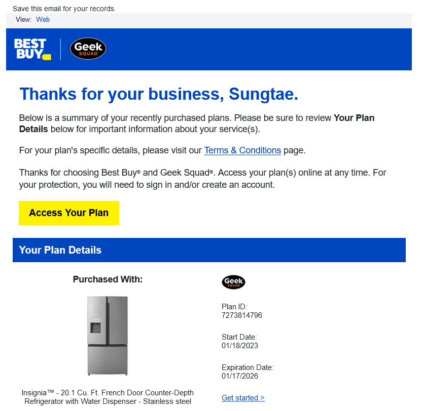 INSIGNIA 양문형 냉장고 (Bestbuy에서 구매)