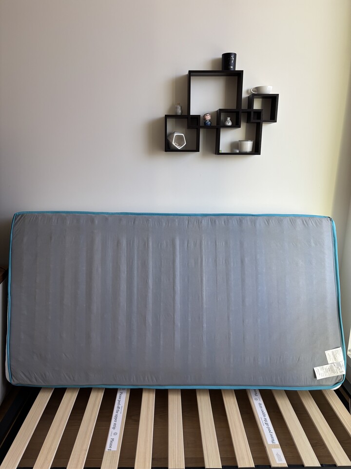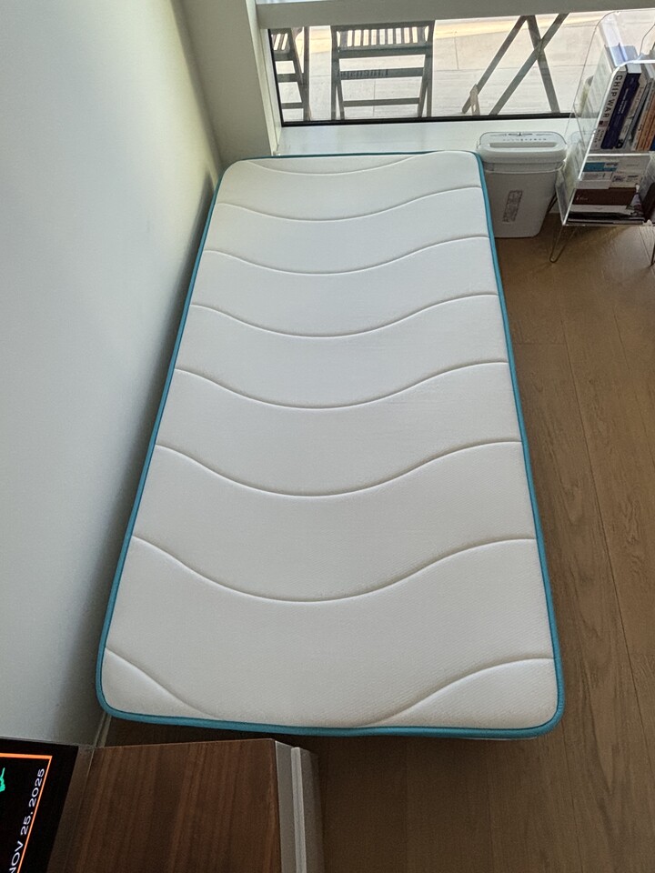 새로 입주하는 스튜디오 집이 너무 좁은 관계로 매트리스를 놓을까, 소파를 놓을까 여러 종류의 가구를 고민하면서 이것 저것 트라이하다가 결국 소파로 결정하고 새 매트리스는 그냥 팔까 합니다. 브랜드는 아니지만 탄탄하고 좋습니다.