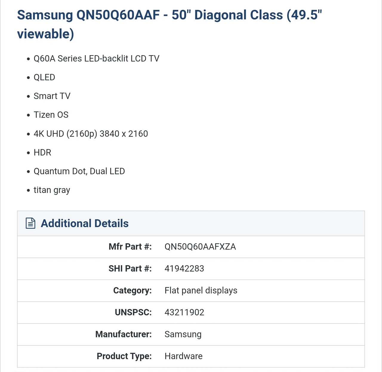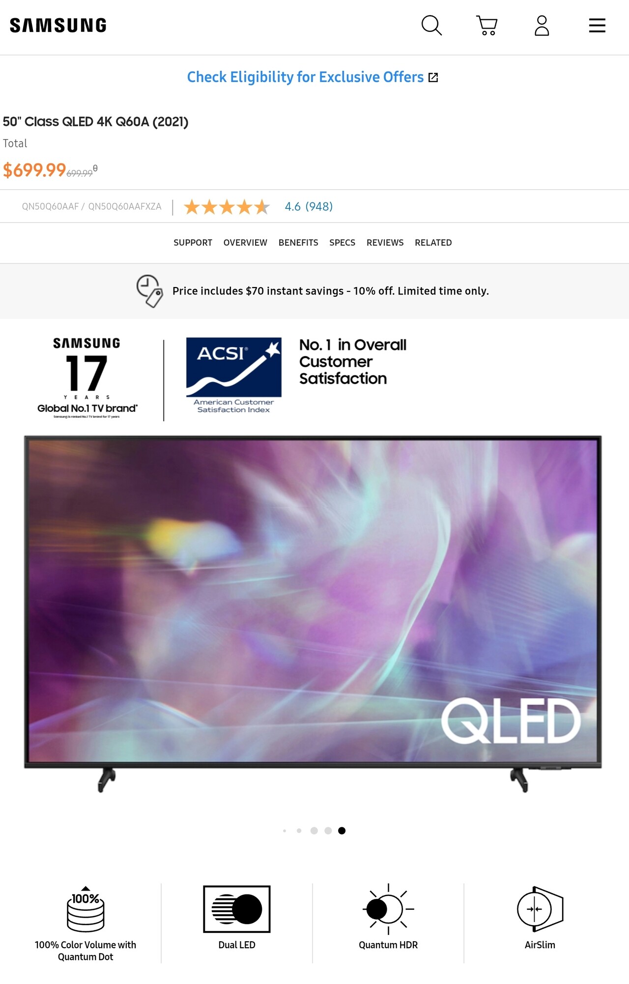 일반 4K TV가 아니고, Quantum Dot Dual LED HDR 초슬림 50" UHD TV 입니다.