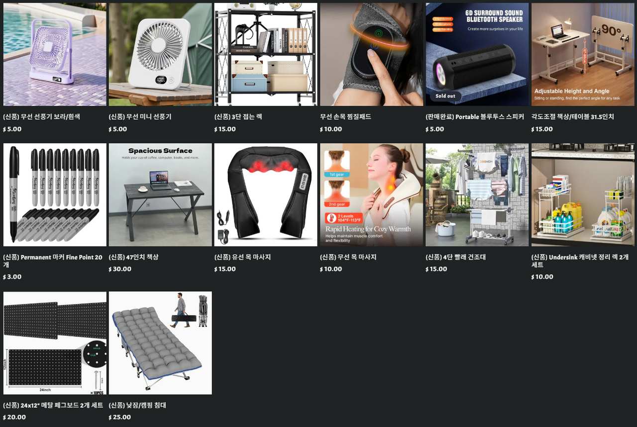 - 하루혹은 이틀에 물건 최소 하나씩 올립니다. ( 주로 저녁 9시 이후 )