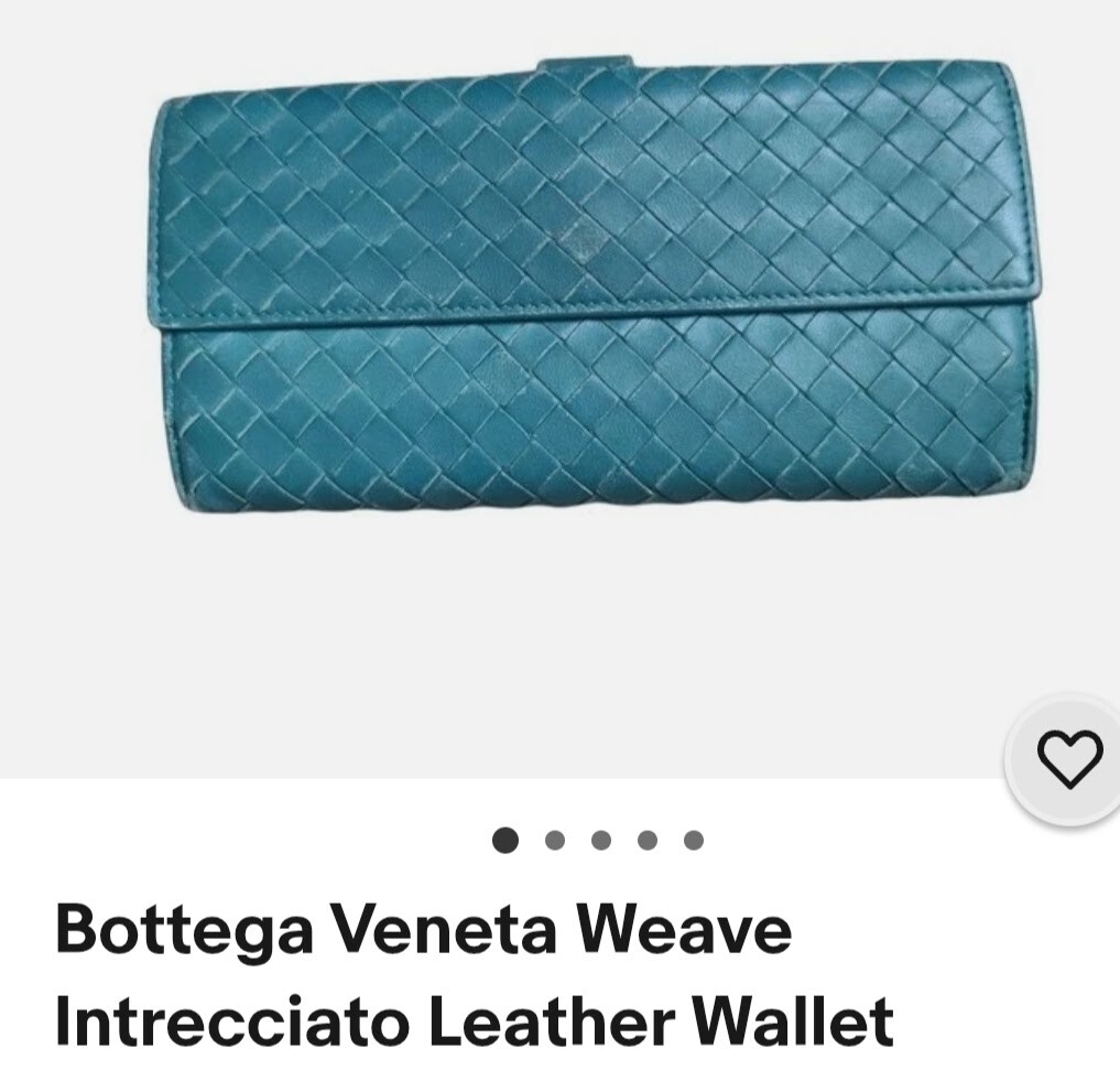보테가 베네타의 시그니처 인트레치아토 위브 가죽으로 제작된 청록색 컨티넨탈 지갑입니다.