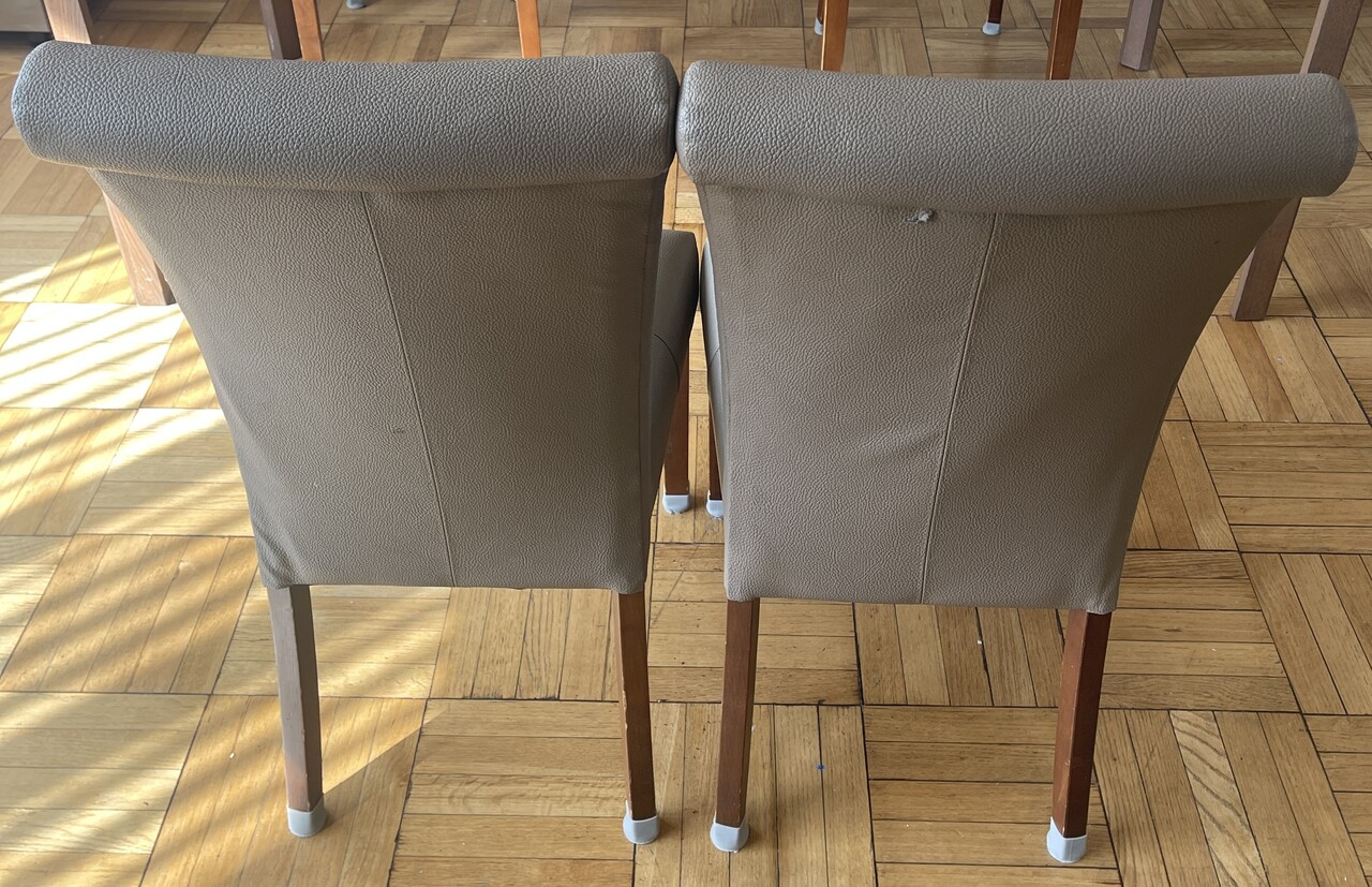 가격은 70불이고, 의자 하나는 뒤쪽에 살짝 찢긴 부분 있습니다.