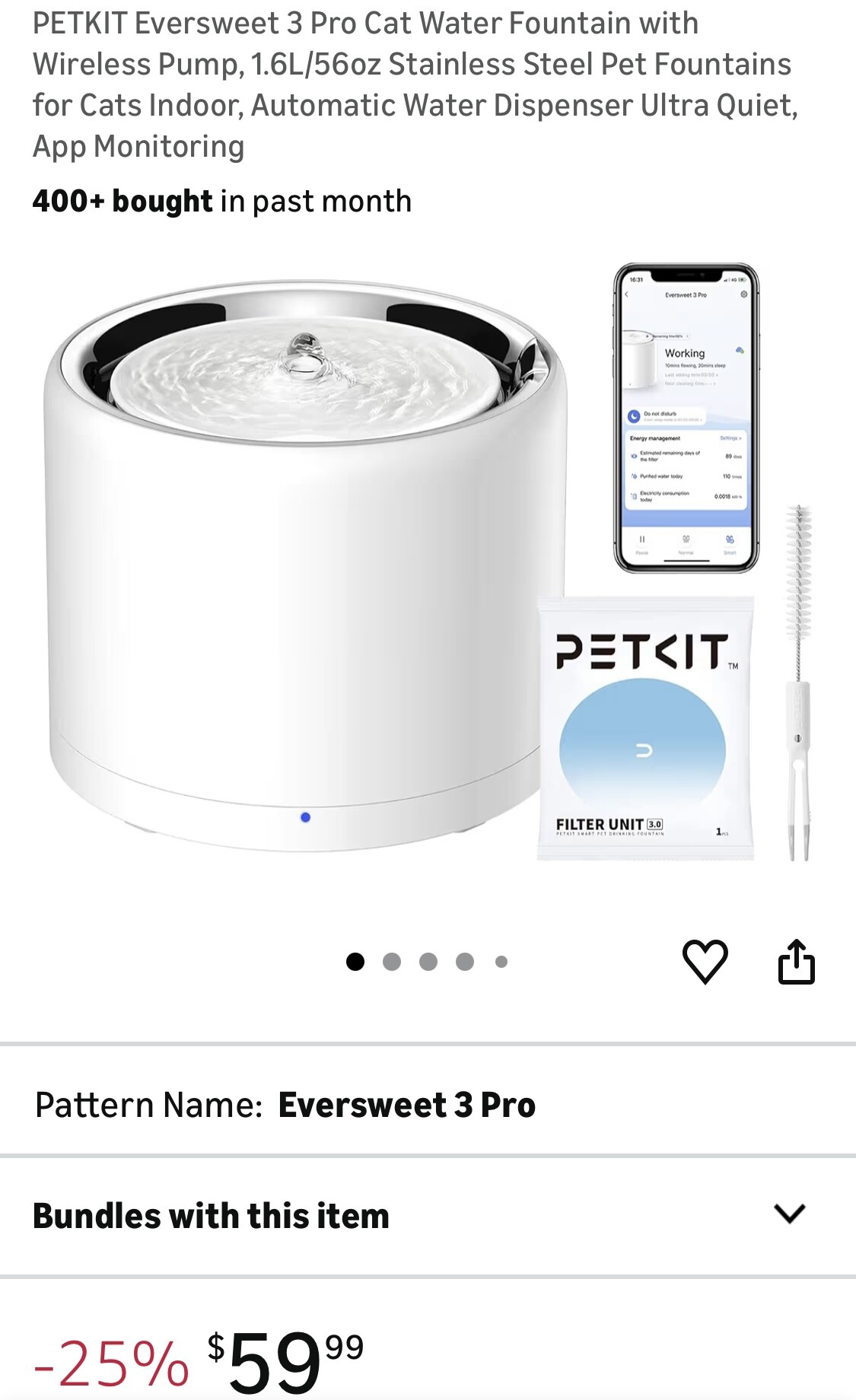 PETKIT Eversweet 3 Pro Cat Water Fountain+5 New Filters