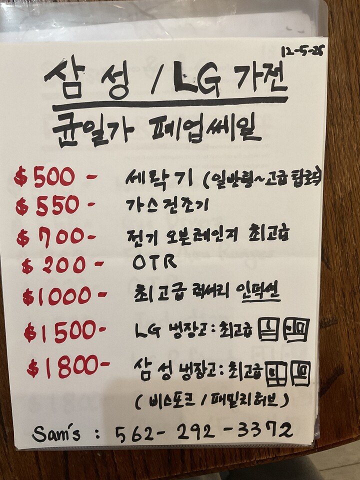 Sam’s Appliance Outlet (삼성 - LG 가전제품 전문판매점)