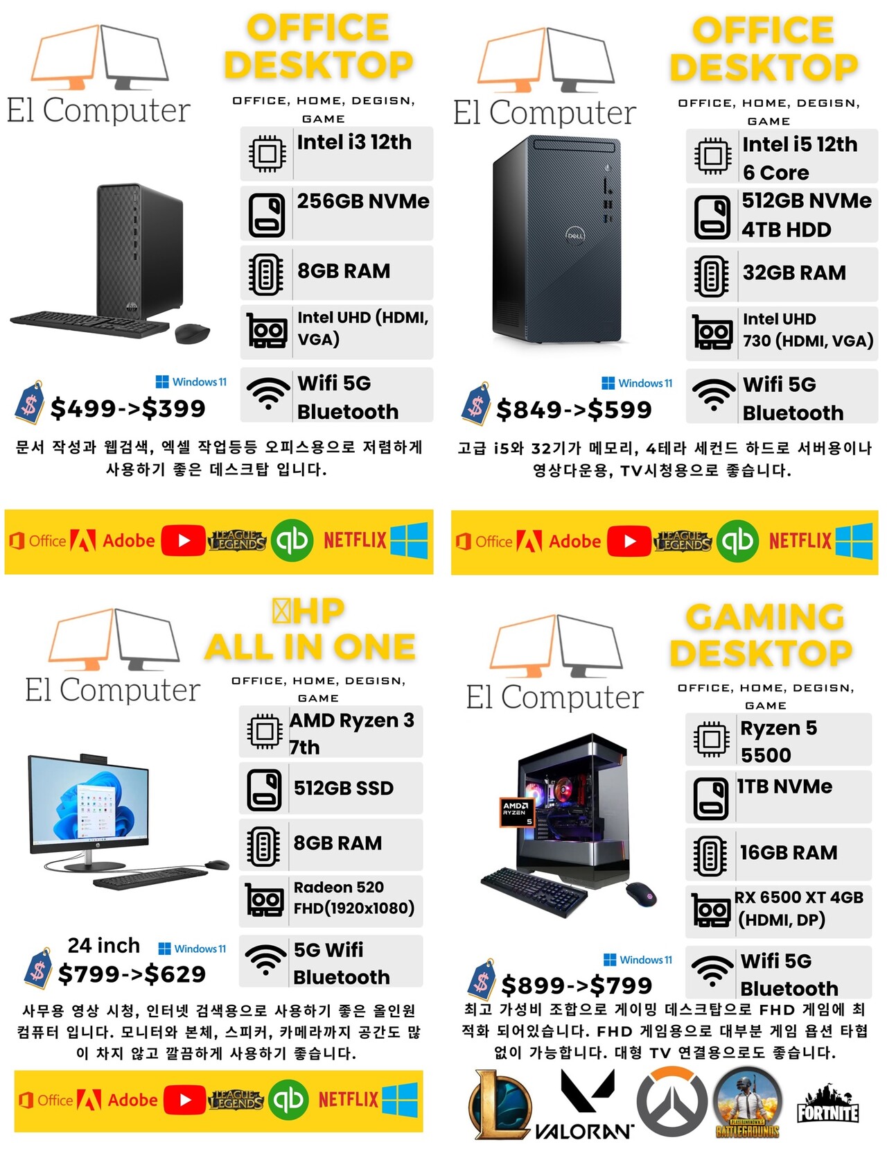 New 검퓨터는 물론, 중고 컴퓨터들(윈도우, 맥)도 좋은 컨디션에 프로그램 설치와 최적화되어서 최저가에 판매합니다. “비즈니스란에 컴엘258”로 검색하셔서 가격링크 비교해보세요.