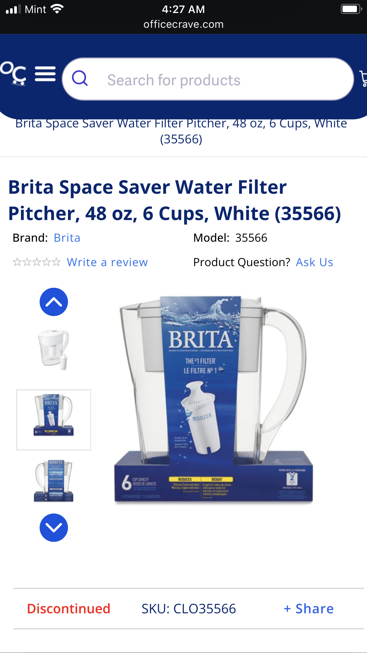 Brita Space Saver Water Filter Pitcher,
