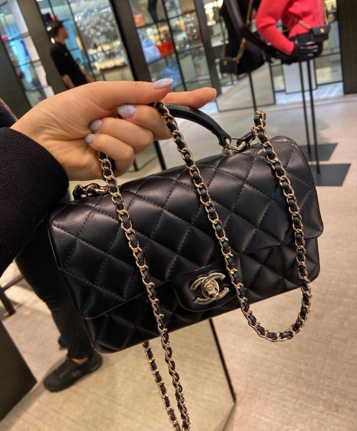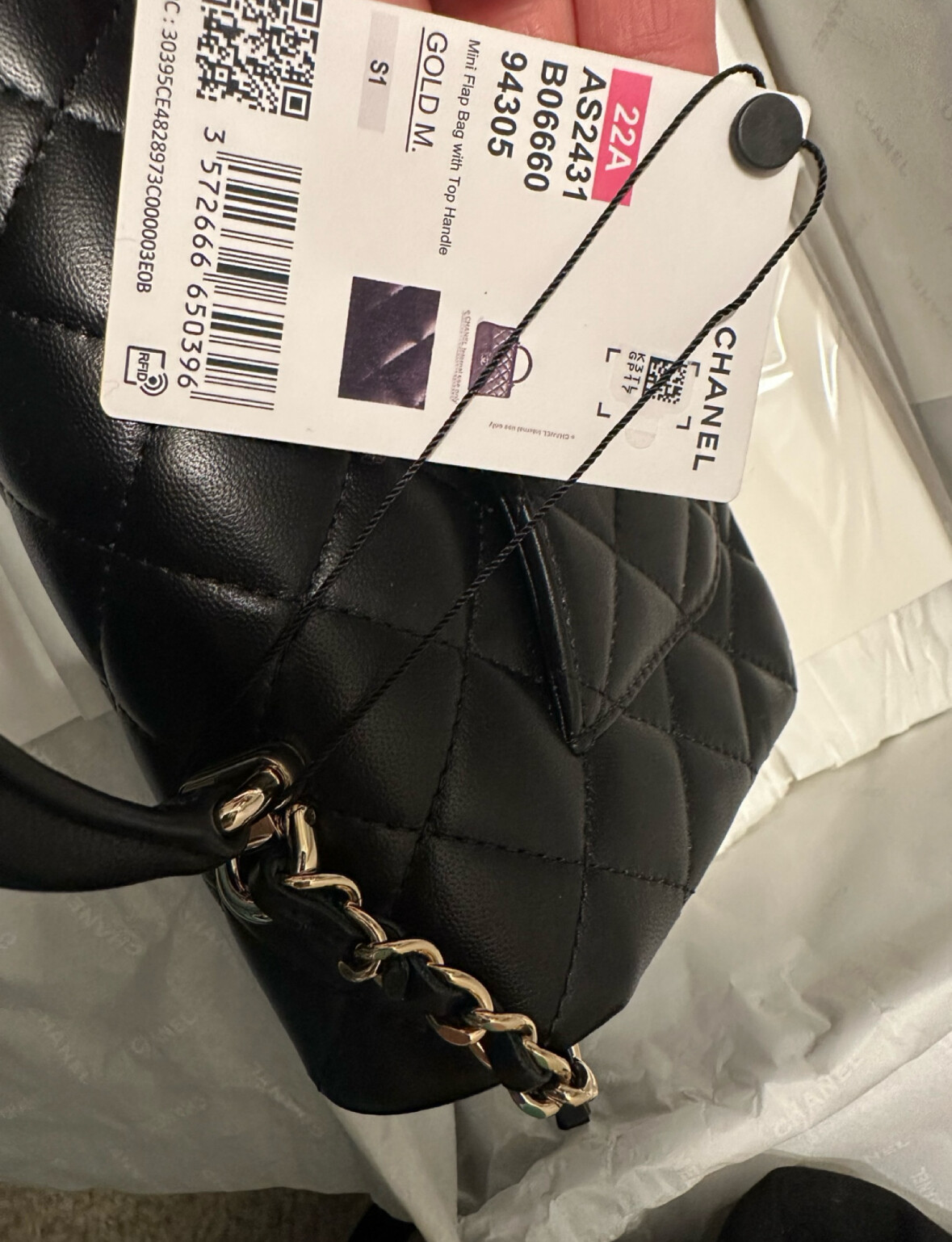 새상품 정품 샤넬 미니탑핸들 샴페인 골드
