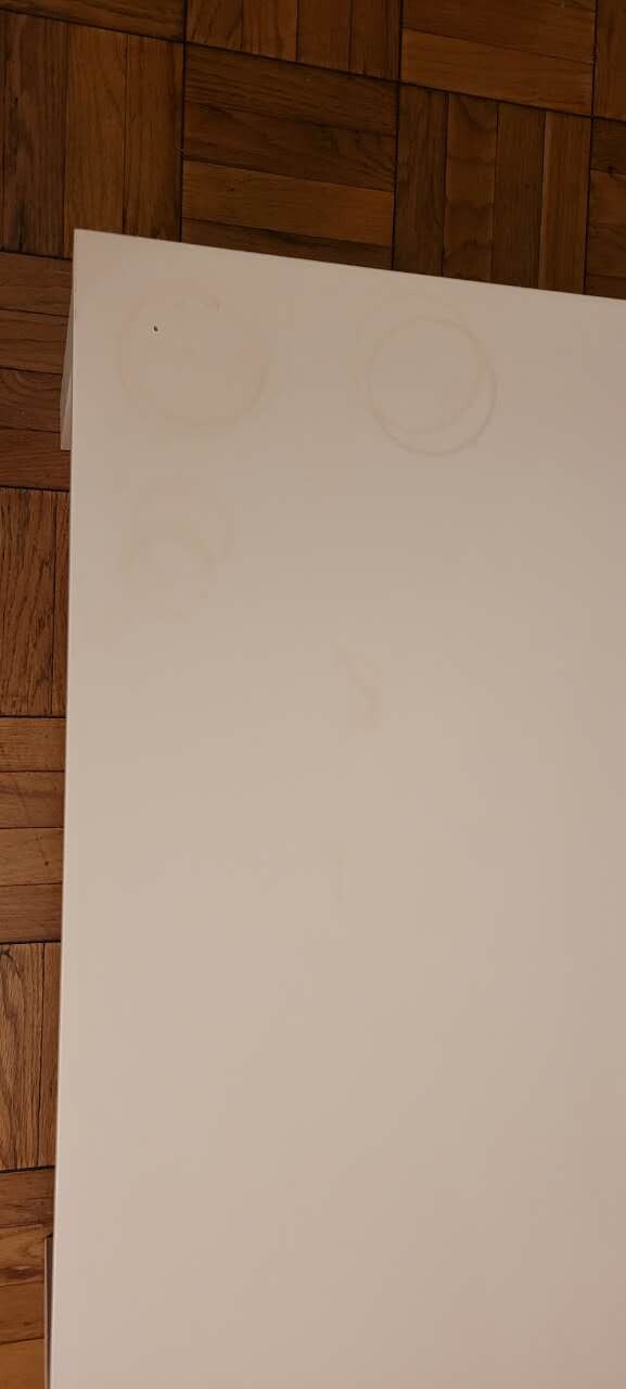 이케아 테이블이며 테이블 모서리에 커피잔 자국이 있습니다
