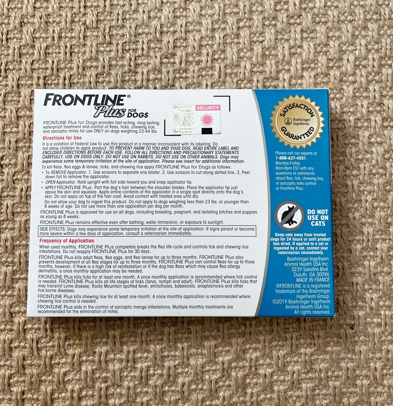 필요 체중(23–44 lb) 범위 외의 개에게는 다른 용량의 제품이 필요합니다.