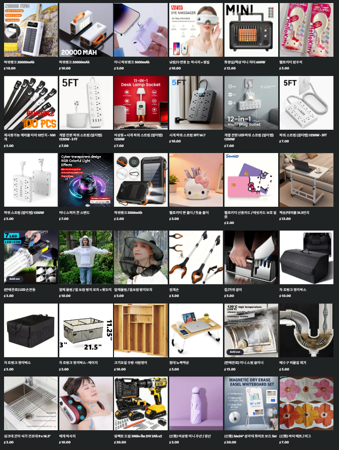 - 하루혹은 이틀에 물건 최소 하나씩 올립니다. ( 주로 저녁 9시 이후 )