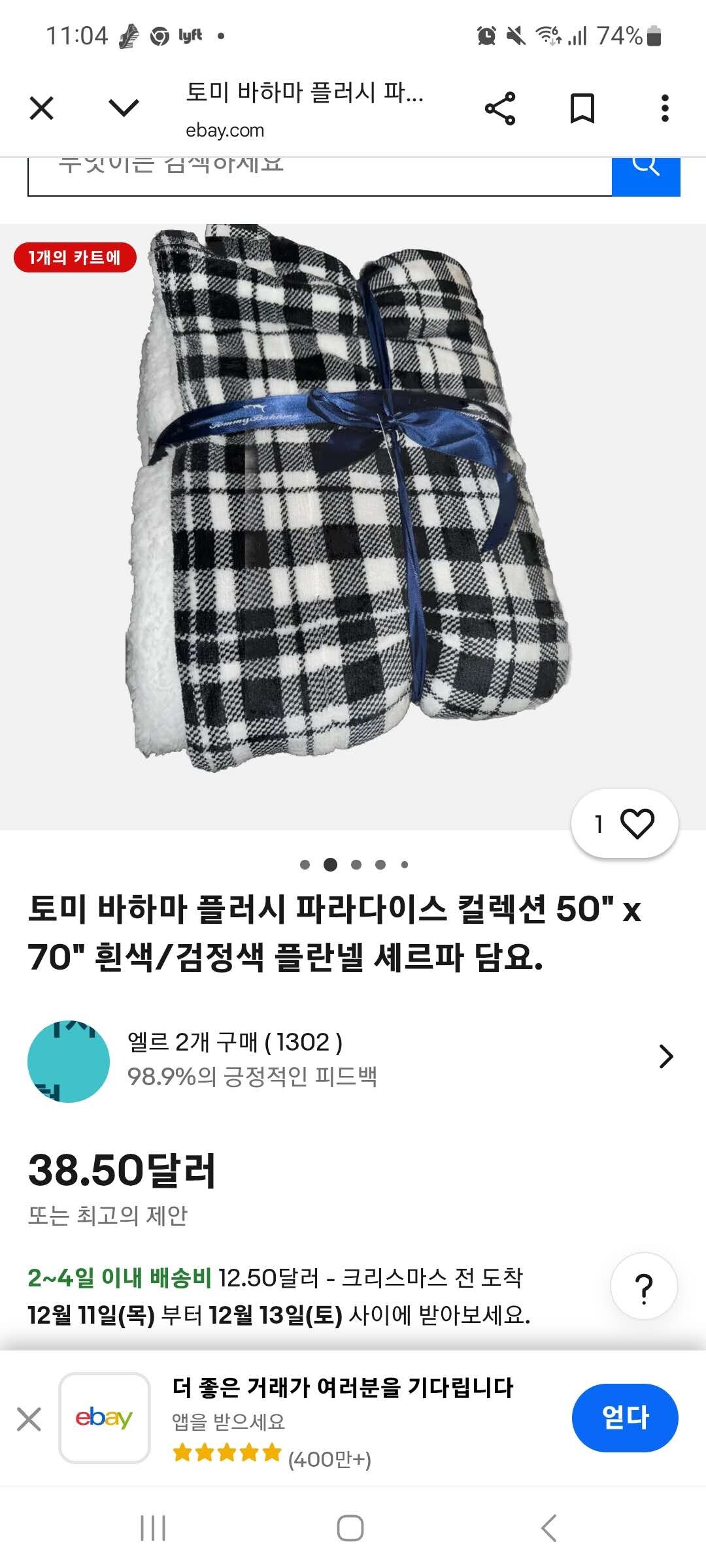 2. 담요 가격: $10.00
