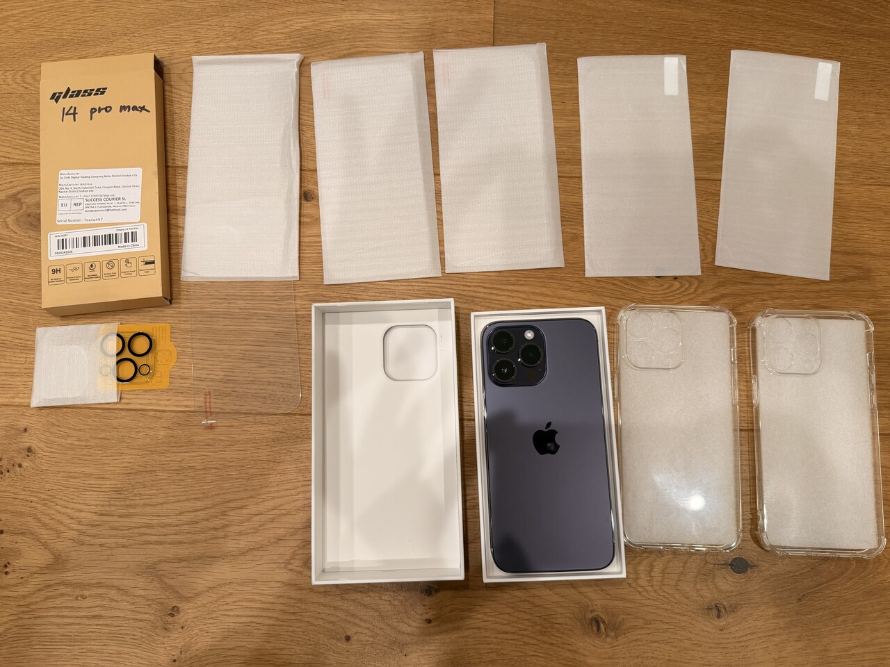 For sale is an Unlocked iPhone 14 Pro Max 128gb in deep purple.