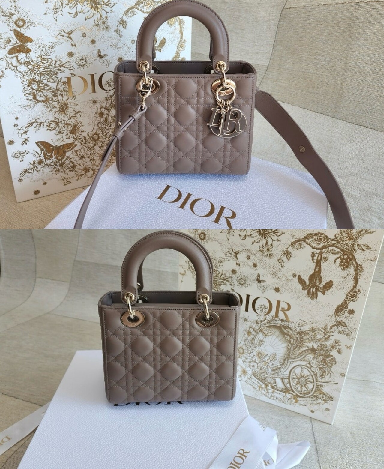 -까나쥬 퀼팅의 역할: 레이디백의 특징인 까나쥬(Cannage) 패턴은 가죽 표면을 다이아몬드 모양으로 퀼팅 처리한 것입니다. 이 퀼팅 처리 자체가 가죽 표면의 팽팽한 면적을 나누어 주어 미세한 스크래치나 주름이 덜 도드라져 보이게 하는 효과를 줄 수 있습니다.