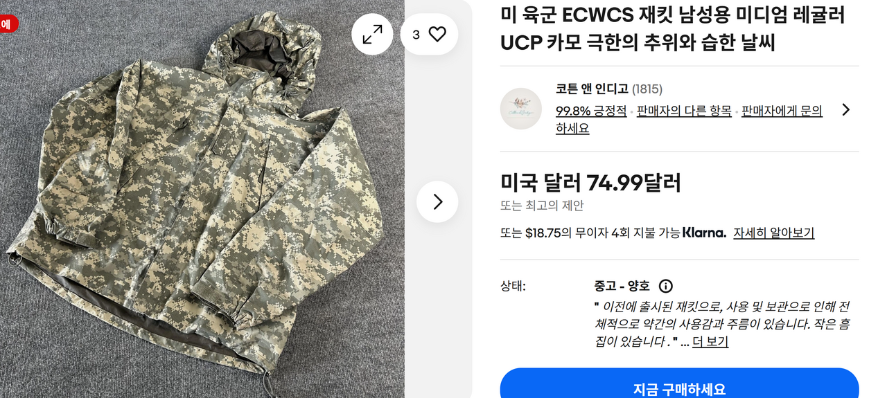 ECWCS 재킷 주요 특징