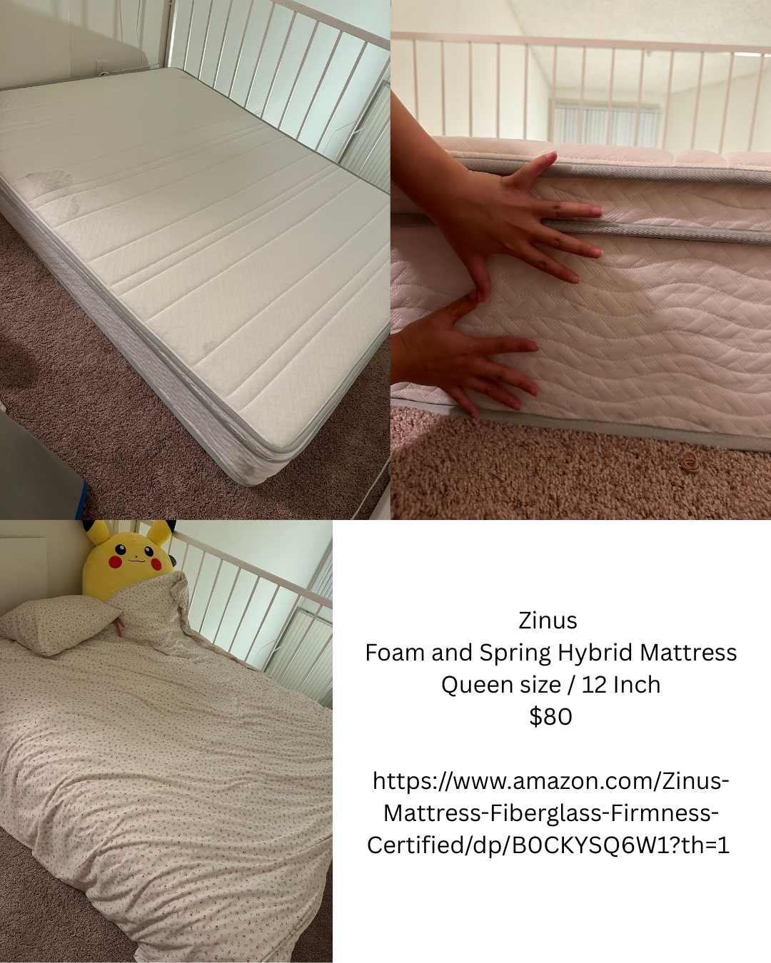 Zinus Foam and Spring Mattress Queen size / 12 Inch - $80
