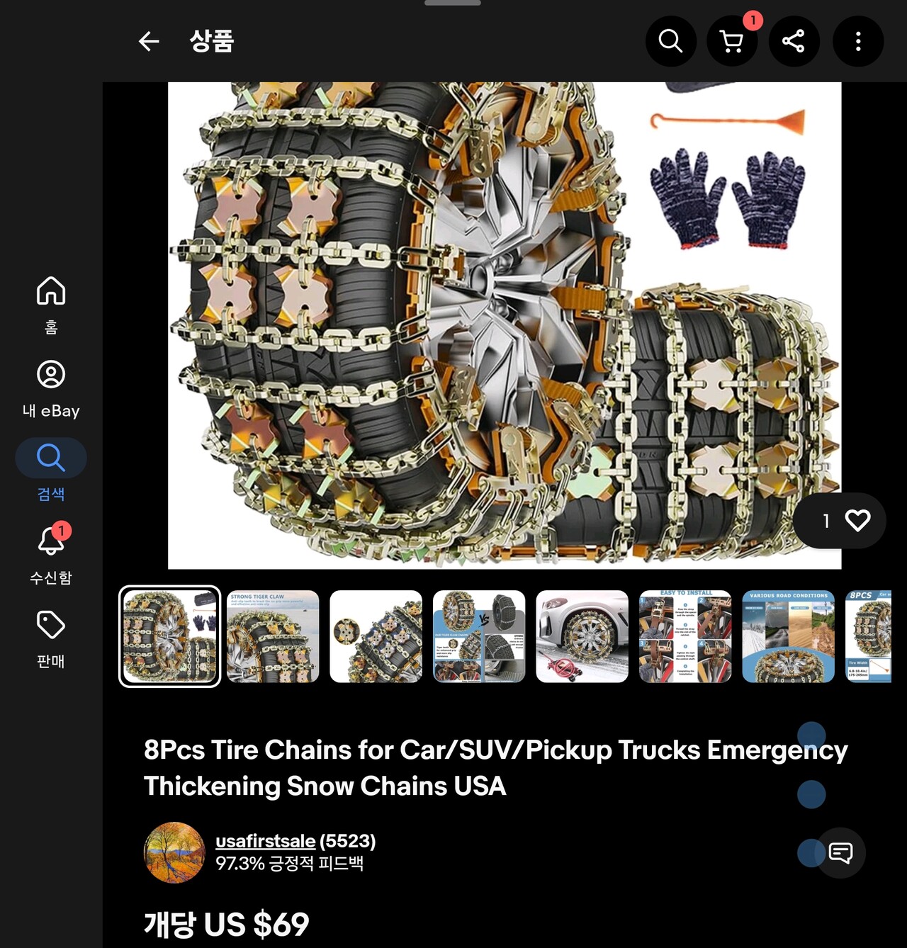 첨부한 사진의 제품과 동일합니다.(8pcs steel tire snow chains)