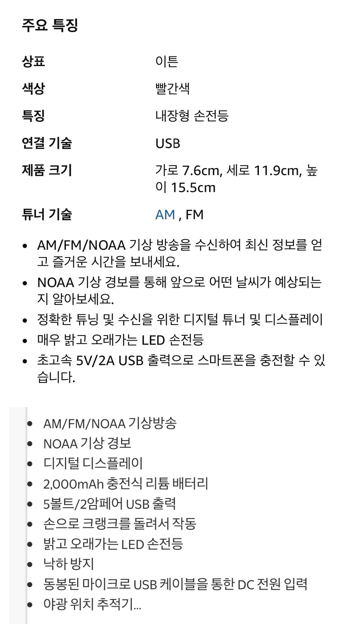 이튼 충전식 기상 경보 라디오
