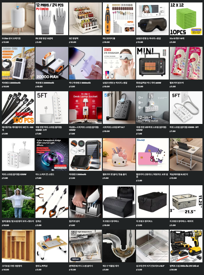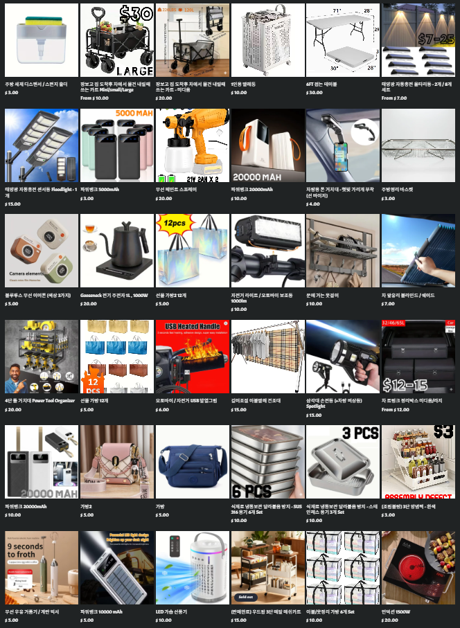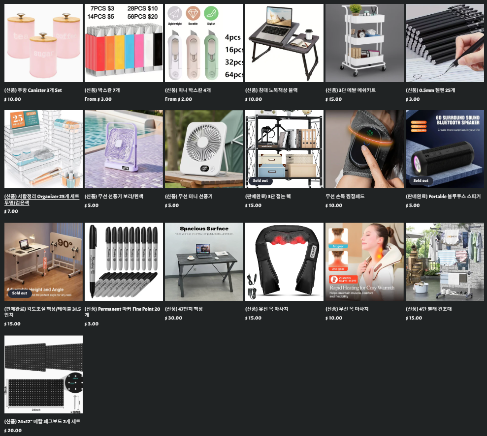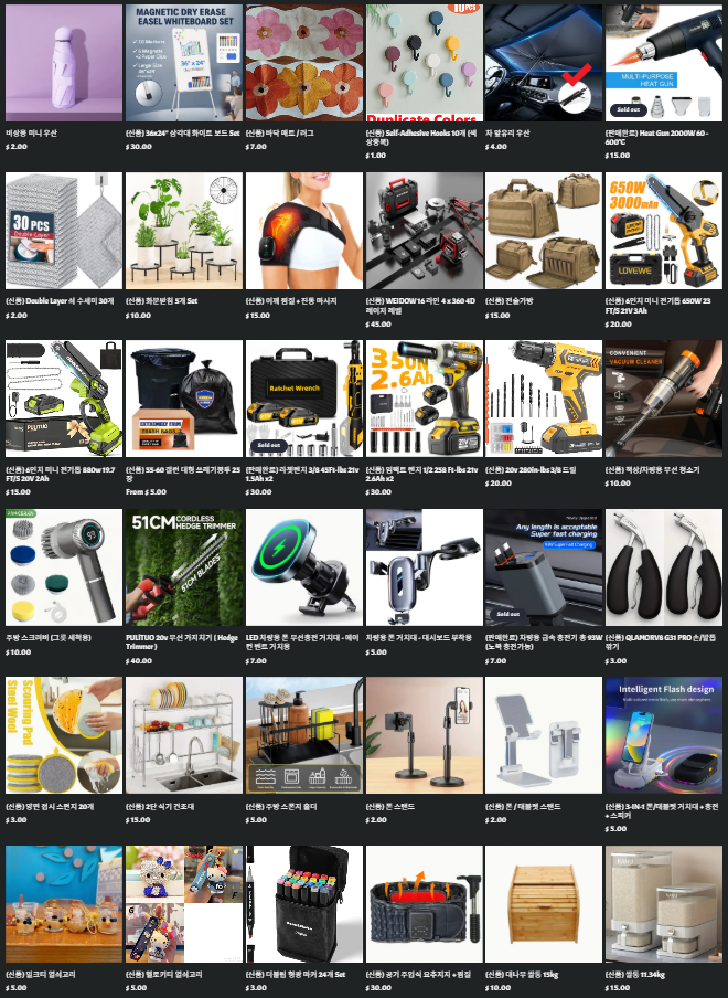 - 하루 혹은 이틀에 물건 최소 하나이상 올립니다. ( 주로 저녁 9시이후 )