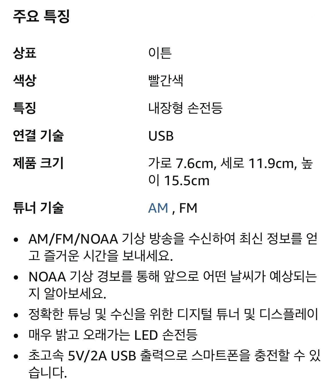 이튼 충전식 기상 경보 라디오