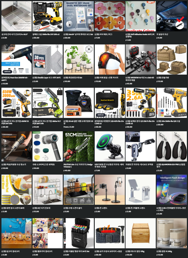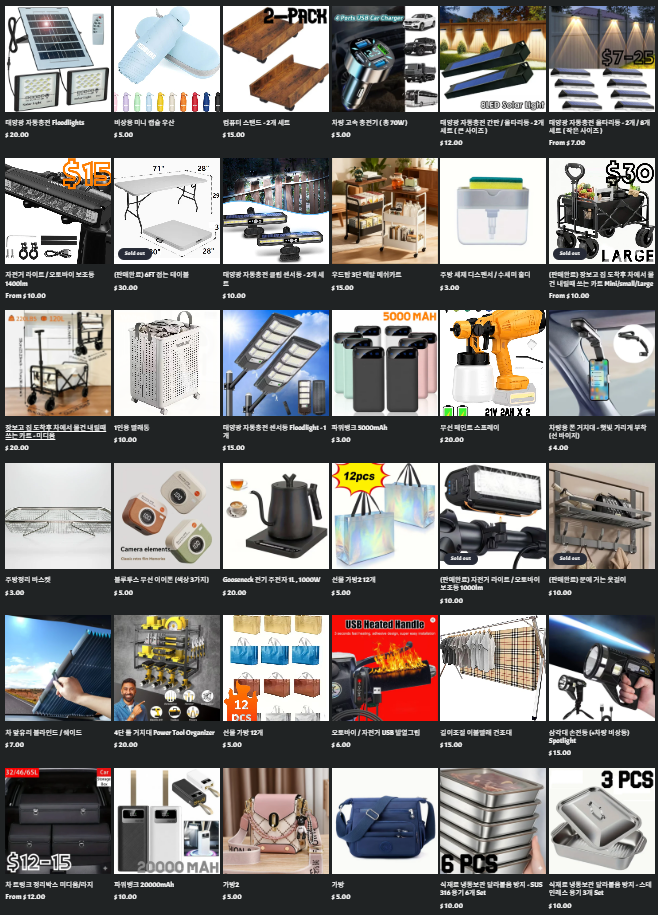 - 하루 혹은 이틀에 물건 최소 하나이상 올립니다. ( 주로 저녁 9시이후 )