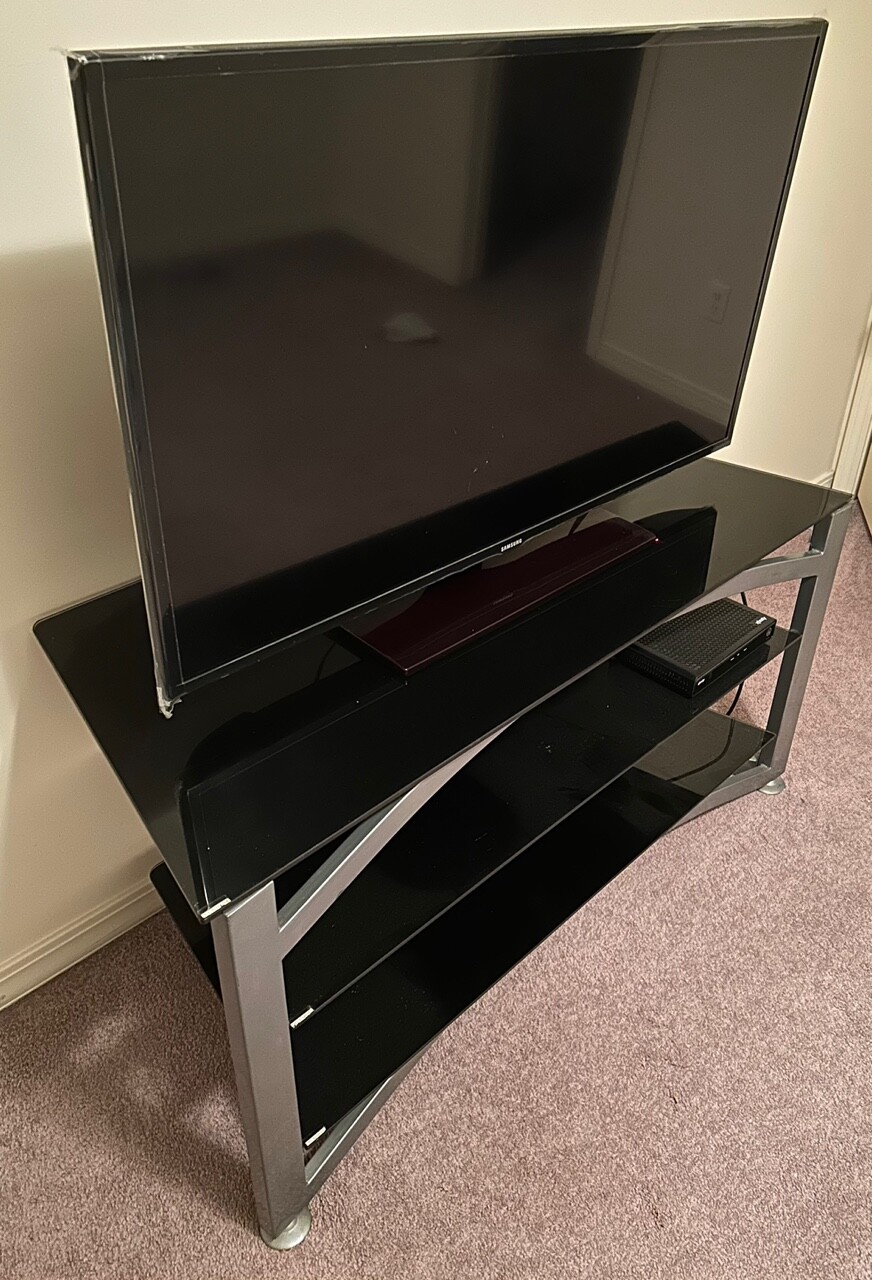 1) 티비 - 사진 확대해 보시면 아실거에요 넓고 튼튼합니다 ($285, 48인치 삼성 스마트 티비 + 선반)